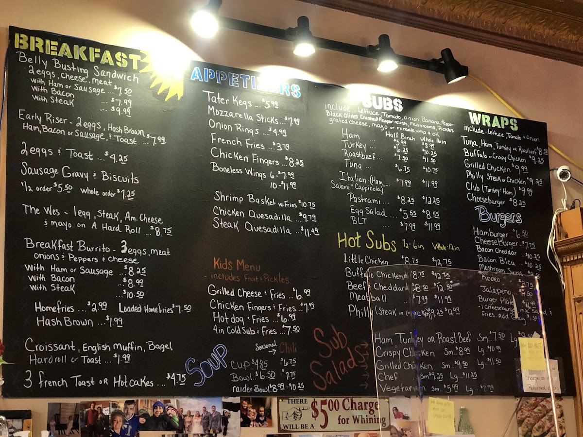 The menu starts with Sub Salads, featuring savory options like Ham, Turkey, and Grilled Chicken, all priced affordably from $9.49 to $13.25. Ideal for a hearty lunch, the Wraps menu is equally enticing, offering selections such as the Club and Buffalo Chicken wraps that promise a flavor-packed bite.